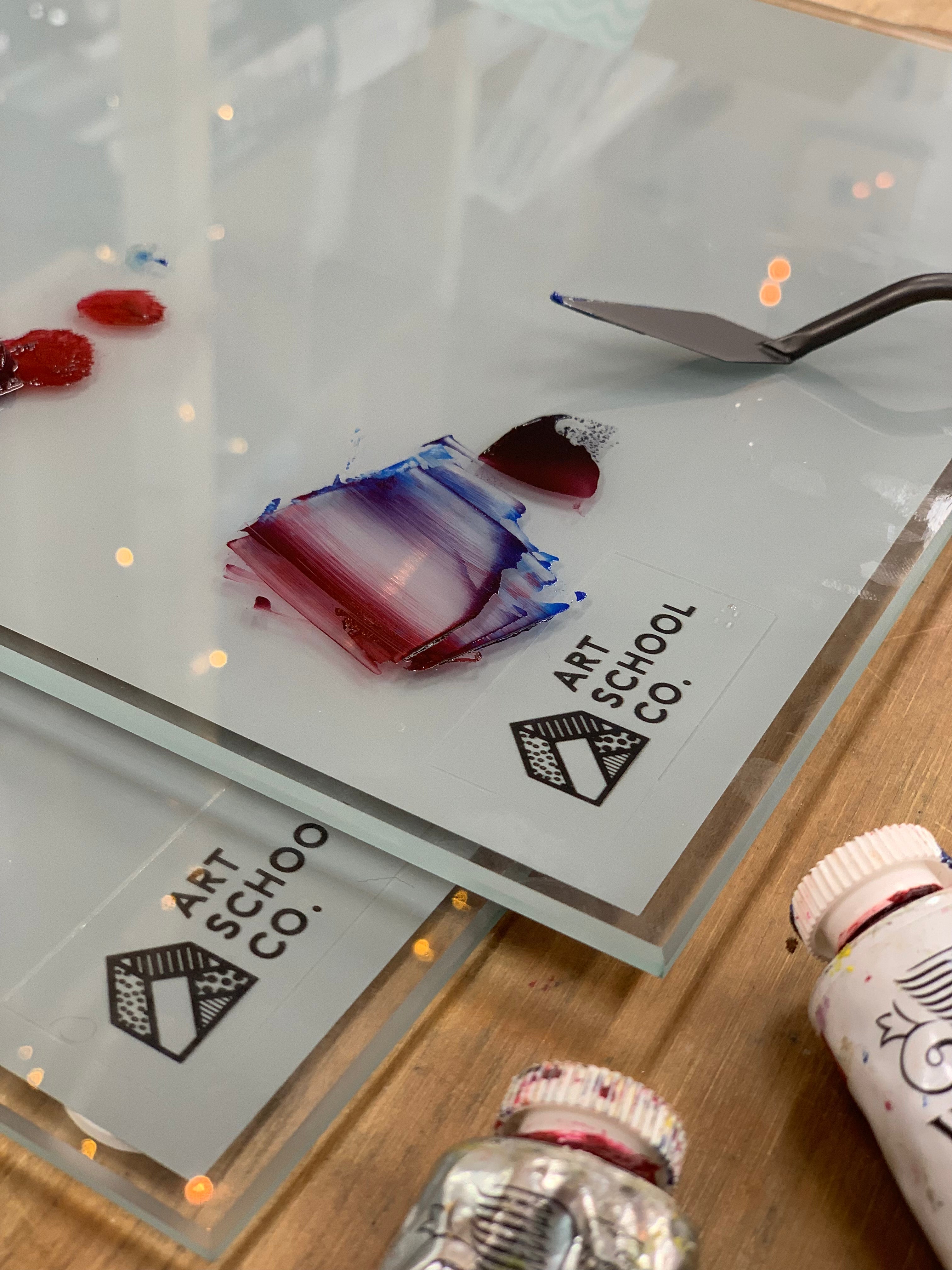 We searched for a midtone, tempered glass palette for our own use & for students but struggled to find them within Australia, so we made our own!