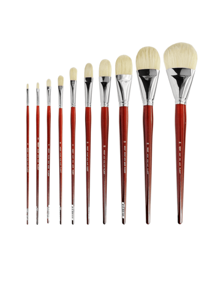 These filbert shaped hog hair brushes are perfect for oil and acrylic painting. All NEEF artists' brushes are hand made and the attention to detail in the manufacturing process has to be seen to be believed. Since 1988 when we etablished our brush range we have seen very few faulty brushes to the point where we at Neef stand completely behind our product and offer a 100% guarantee on the quality of materials and manufacture.