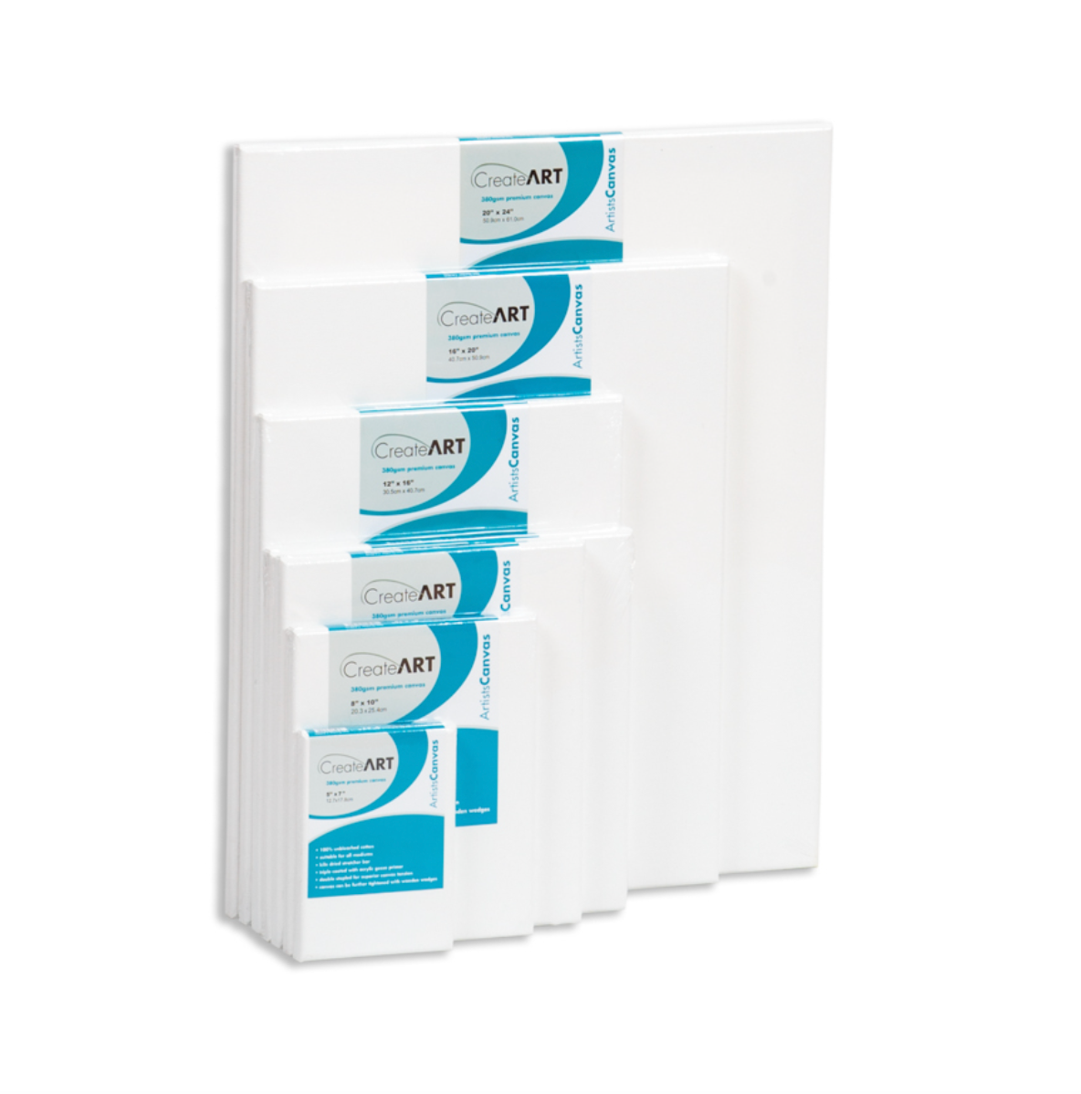 CreateART 16mm Stretched canvases are our entry level range of stretched canvases. Designed with students and art classes in mind and stretched over a kiln dried stretcher bar 16mm x 30mm. The triple primed gesso is formulated to ensure consistency in the painting surface with no need to apply additional gesso. Perfect For Educational Use
