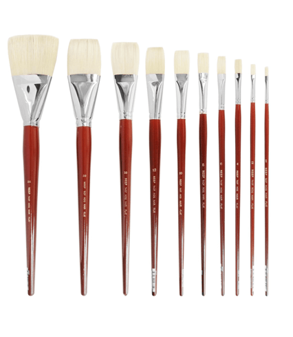 These flat hog hair brushes are perfect for oil and acrylic painting. Flat ferrule but with square end. Great economical choice for any artist.