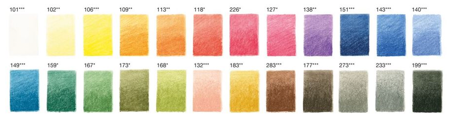 The Pitt pastel pencils contain a high level of pigment, but are wax and oil free, and are perfectly suited for fine details in pastels. Just like the Polychromos pastel crayons they can be easily smudged to create fine colour transitions and perfectly complement the pastel crayons. Only minimal fixing is required, ensuring that the pastel drawings retain their vividness of colour.