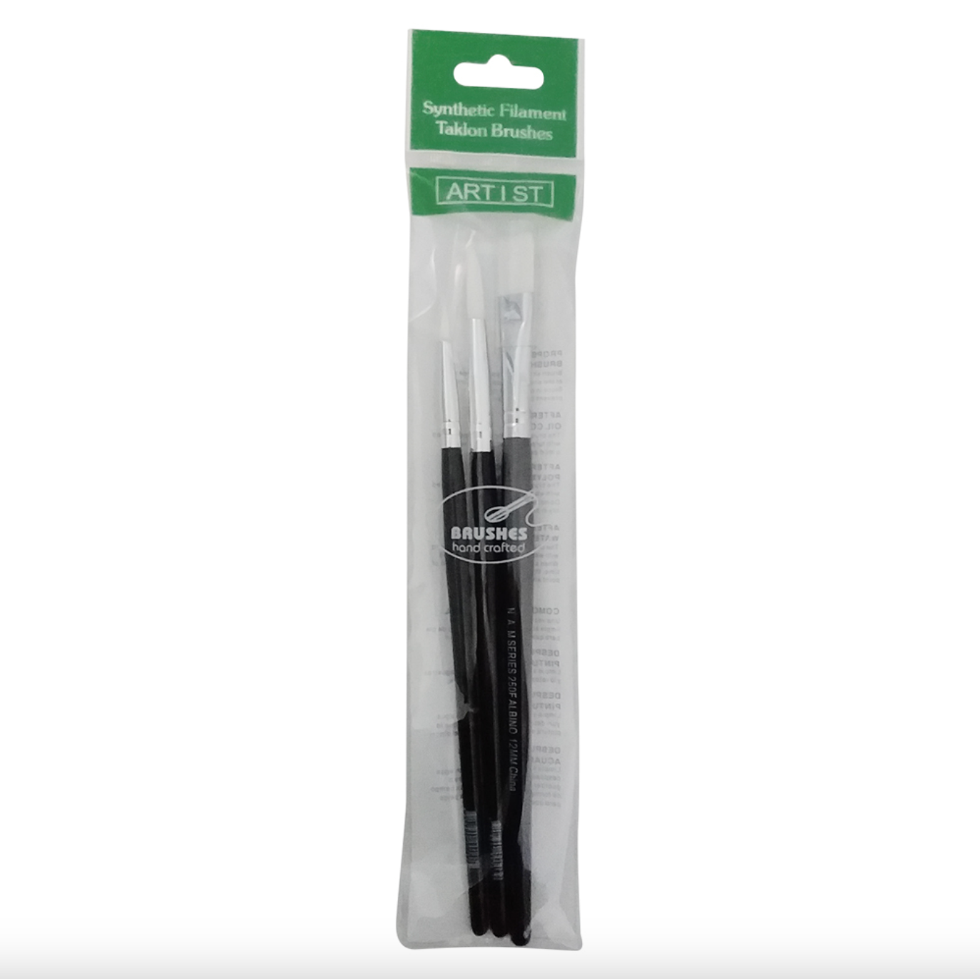 NAM White Taklon Brush Set 3 4+8 Round+12mm Flat